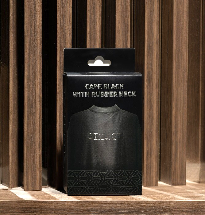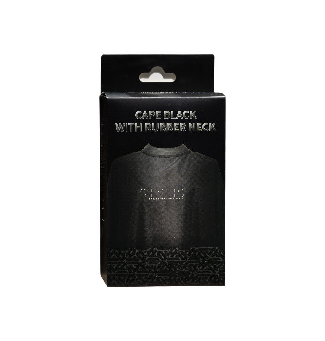 The Stylist Cape Rubber Neck Black is a professional barber cape designed for maximum comfort, protection, and performance during haircuts and styling services. This professional barber cape is ideal for barbers and hairstylists who require full coverage and reliable protection for their clients.