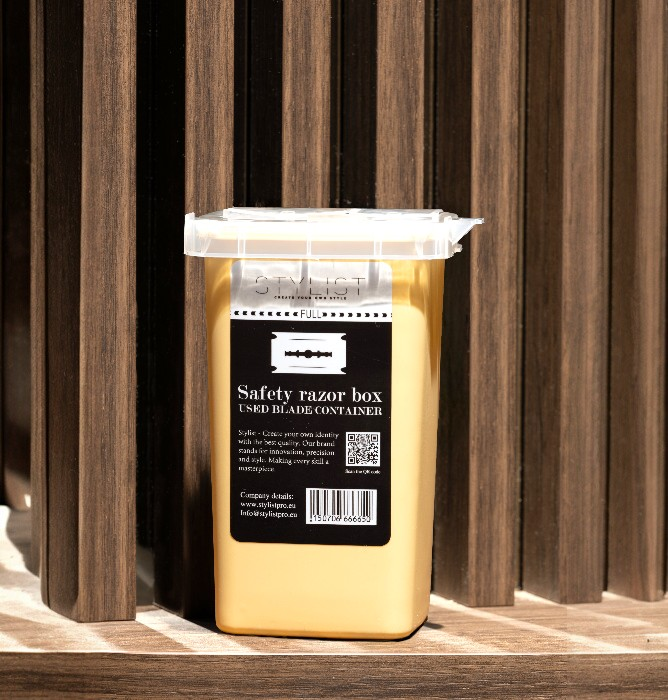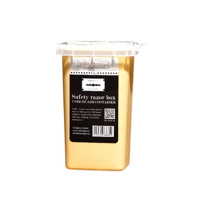 The Safety Razor Disposal Box Crème is a professional storage solution designed for barbers and hairstylists to safely dispose of used razor blades. This razor disposal box is essential for maintaining hygiene, safety, and proper waste management in barbershops and professional salons.